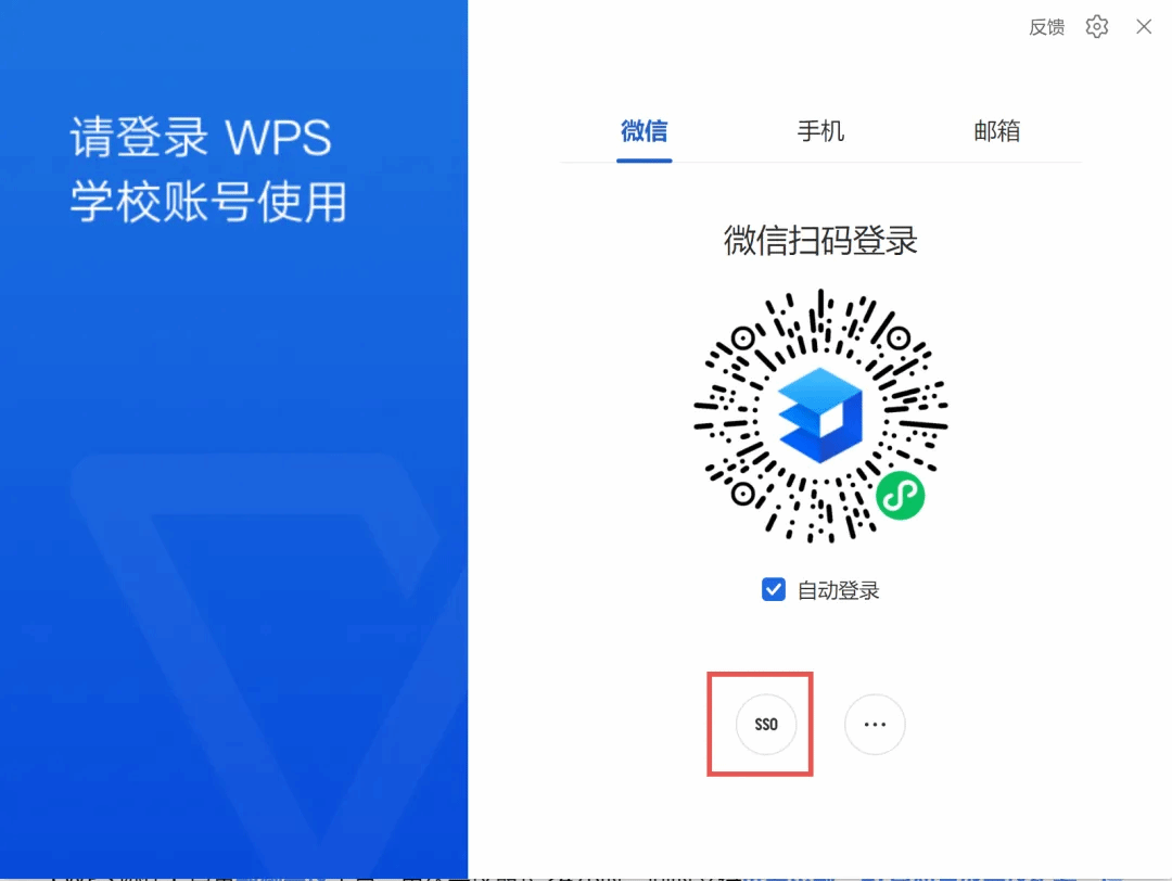 1、打开WPS Office客户端,点击右上角“立即登录”,登录方式选择“SSO”;
